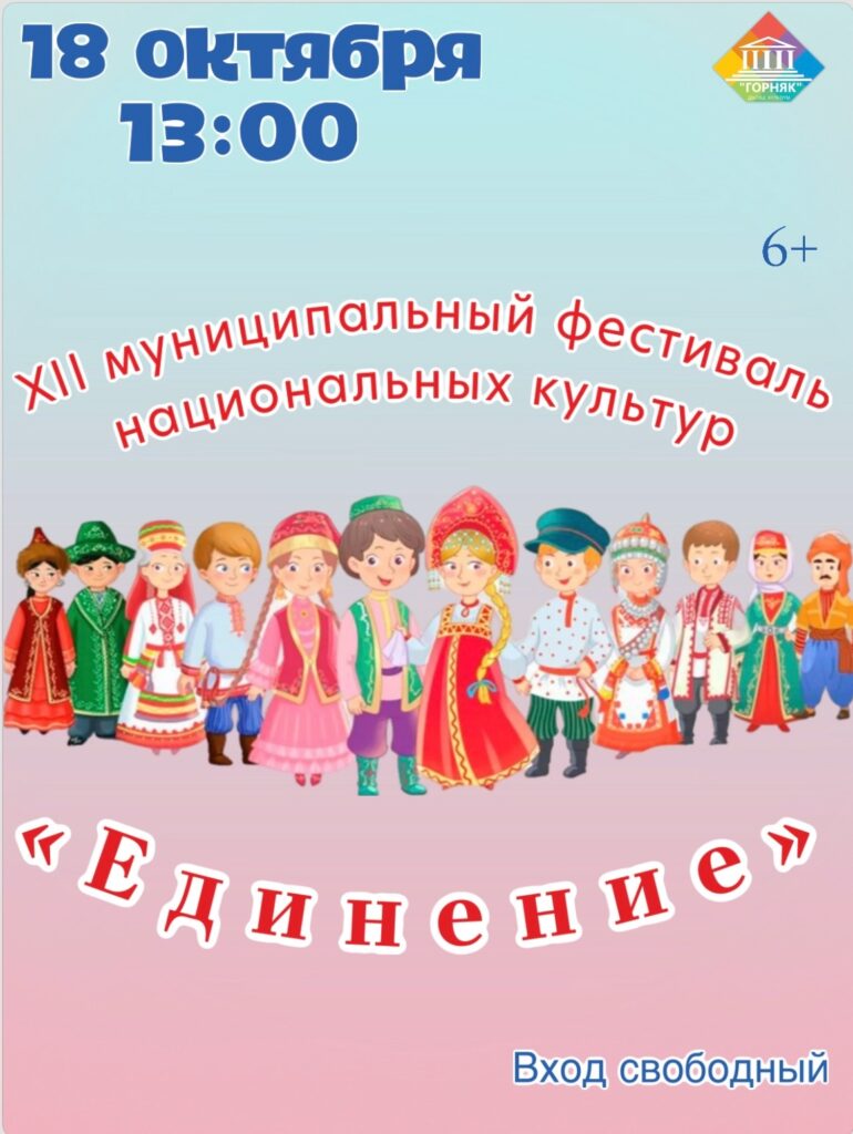 ДК «Горняк» приглашает 18 октября в 13:00 на муниципальный фестиваль национальных культур «Единение»