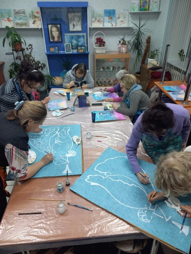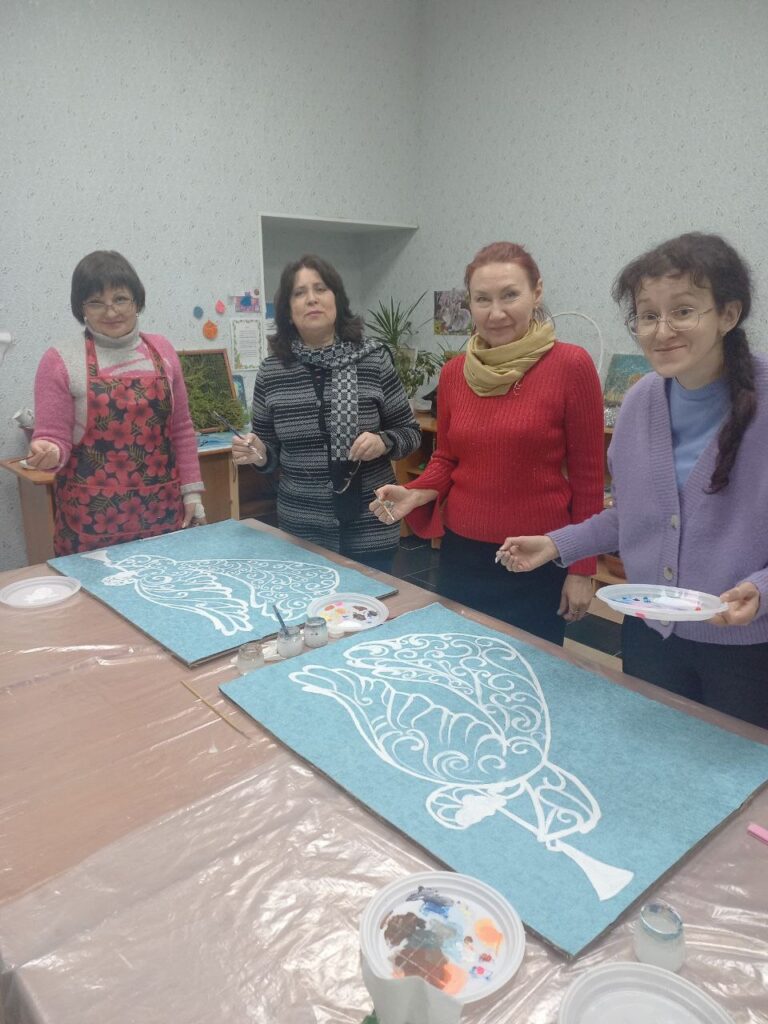 Совместная работа «Панно с ангелами», была выполнена своими руками участниками студии в предпраздничной атмосфере.